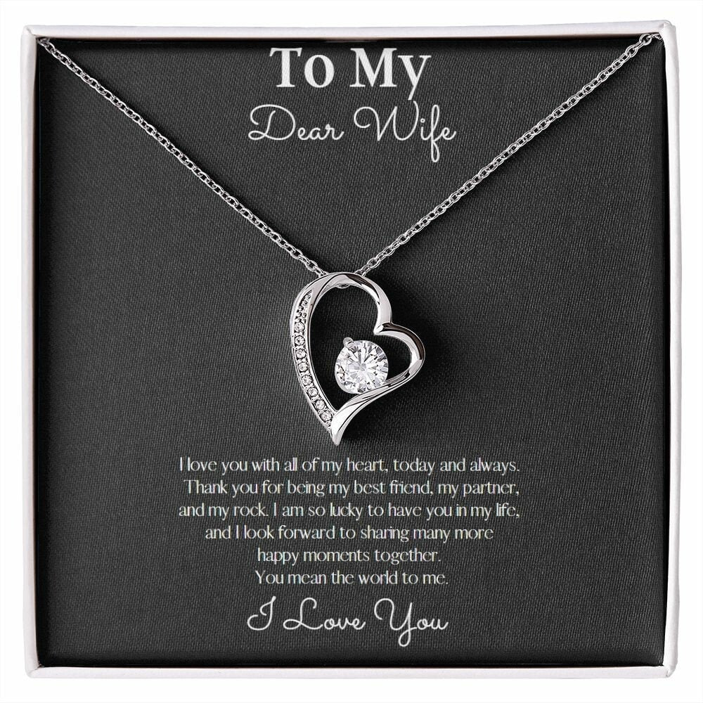 To My Dear Wife” Heart Necklace – Romantic Gift with Message Card | Perfect Anniversary, Birthday & Valentine’s Day Gift